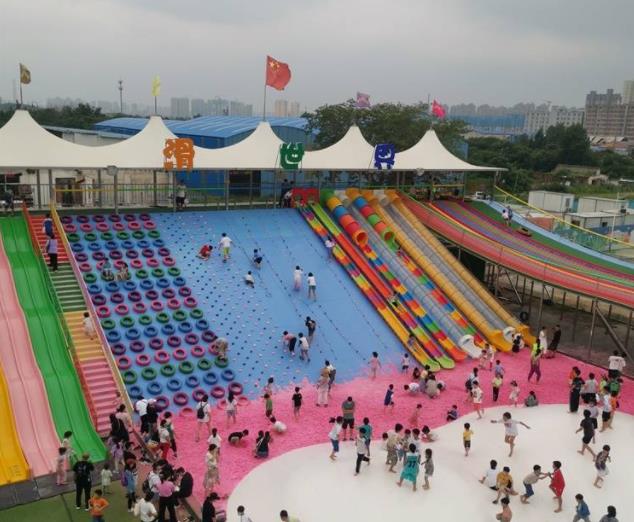 無(wú)動(dòng)力滑世界尺寸都不一樣,長(zhǎng)度15到50米都可以。因?yàn)榛澜绲念伾遣噬模运纸芯W(wǎng)紅七彩滑世界。幾乎每一個(gè)無(wú)動(dòng)力樂園都可以看到它的身影。這樣的無(wú)動(dòng)力滑世界,你感覺它能火多久呢?